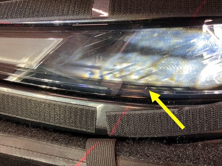 Position the headlight aimer in front of the LH headlight.