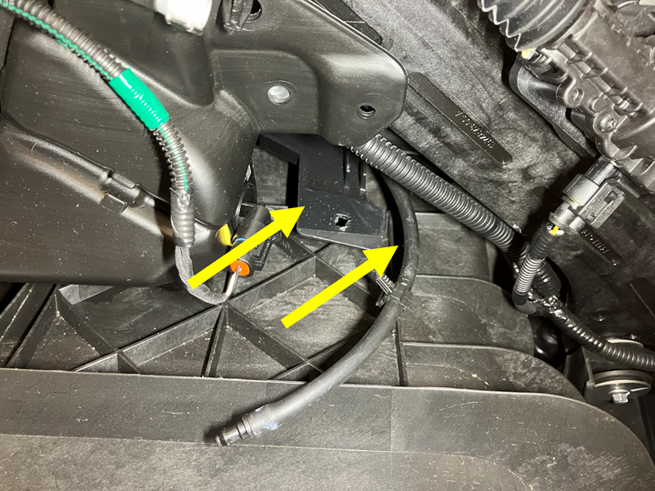Desconecte la manguera del lavaparabrisas de la cámara de la defensa delantera y, a continuación, suelte el clip que sujeta la manguera al vehículo.
