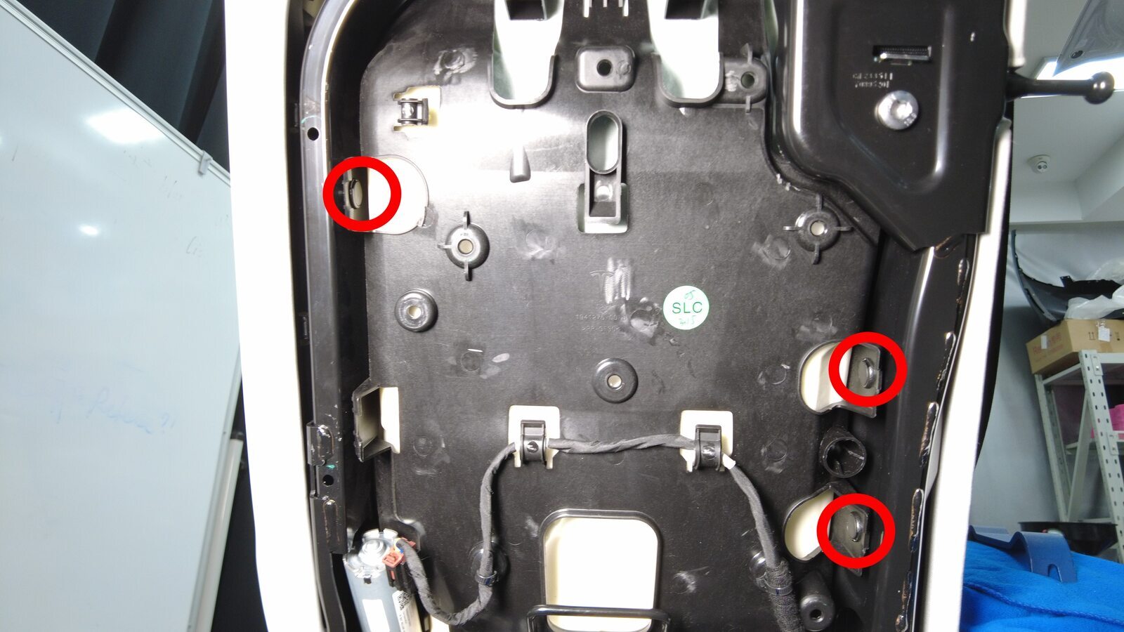Enchufe la conexión del motor de ajuste del respaldo del asiento de la 2.ª fila.