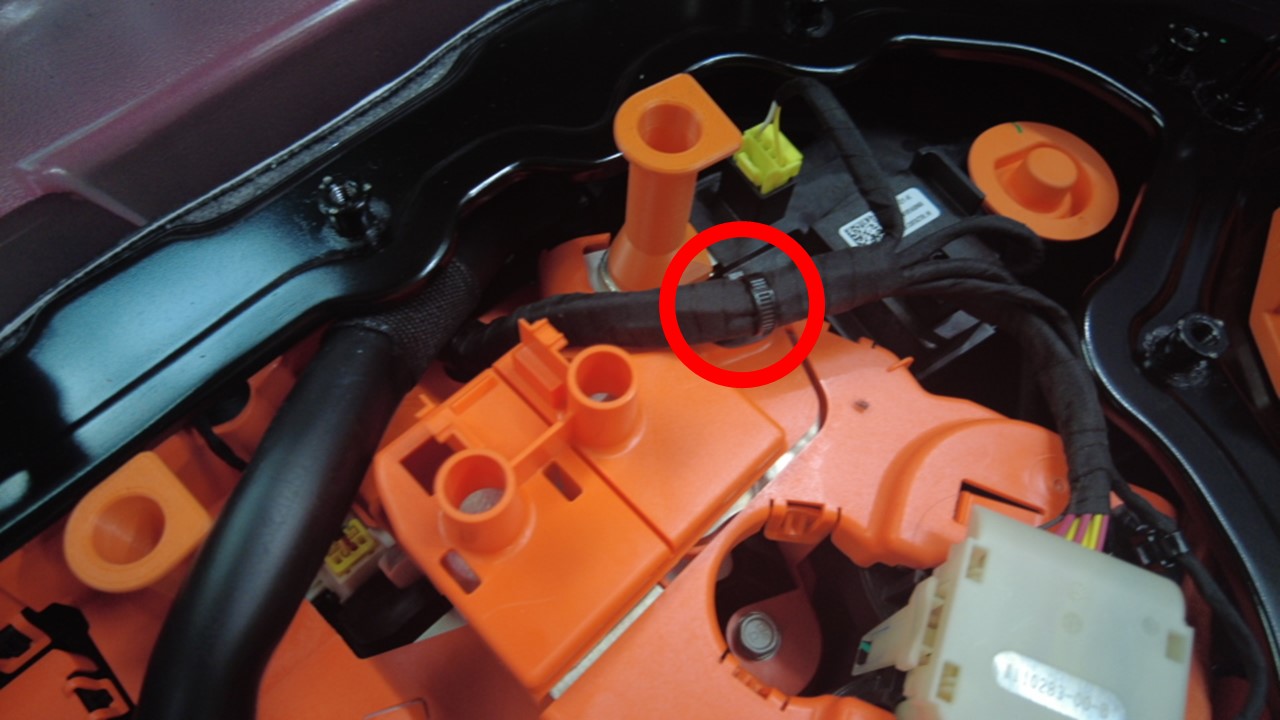 Retire el clip del mazo de cables de la cubierta de los terminales del lado izquierdo.