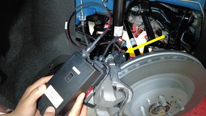 Conecte la herramienta de liberación del freno de estacionamiento electrónico al conector de la pinza del freno de estacionamiento electrónico trasero izquierdo.