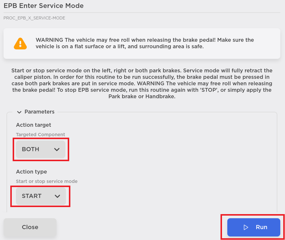 - El vehículo se encuentra ahora en el modo de servicio del EPB.