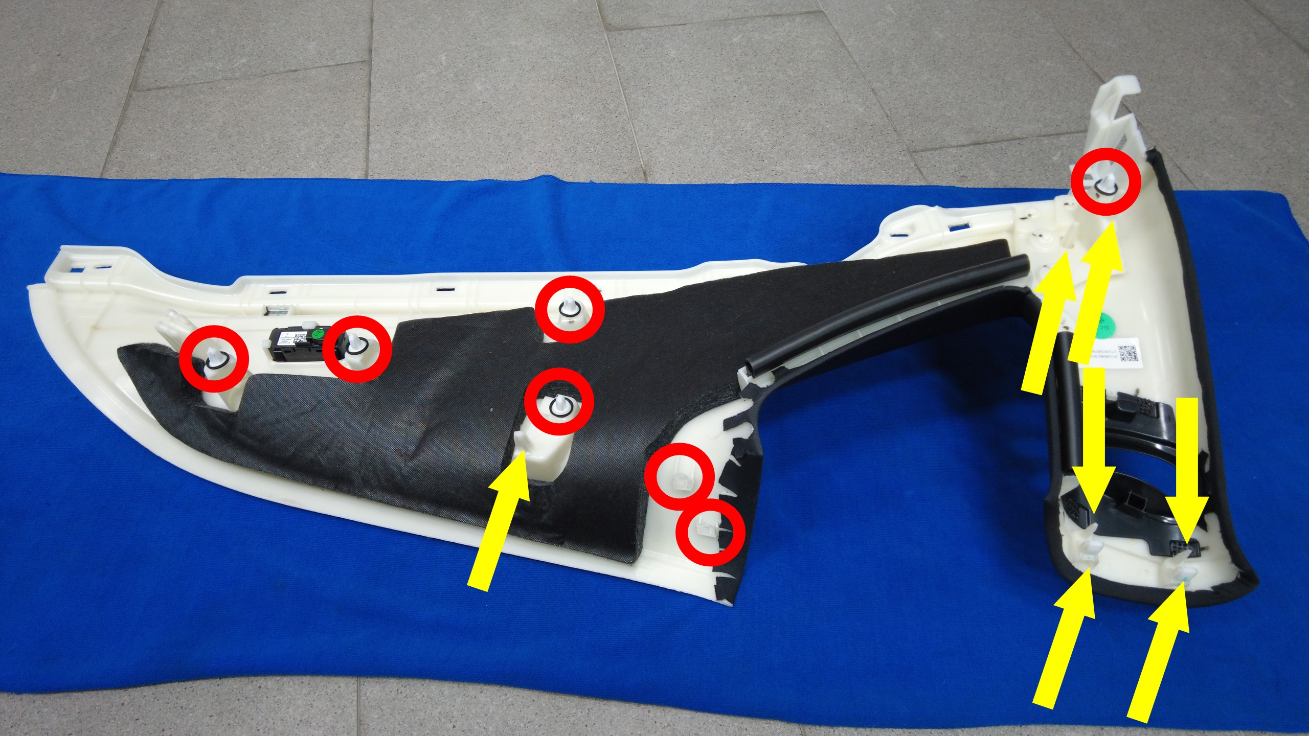 상단 C필러 트림을 고정하는 클립(7개)을 장착합니다.