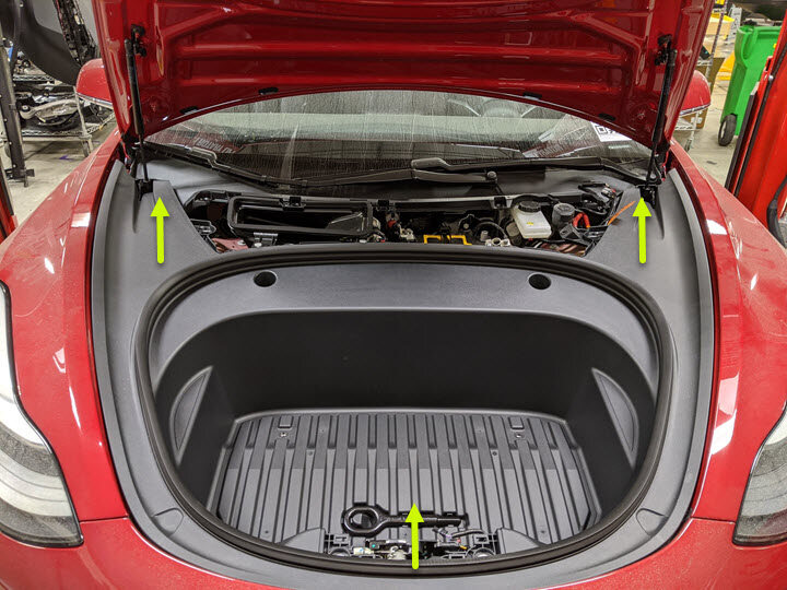 참고Note: Not all Model 3 vehicles have a frunk carpet installed