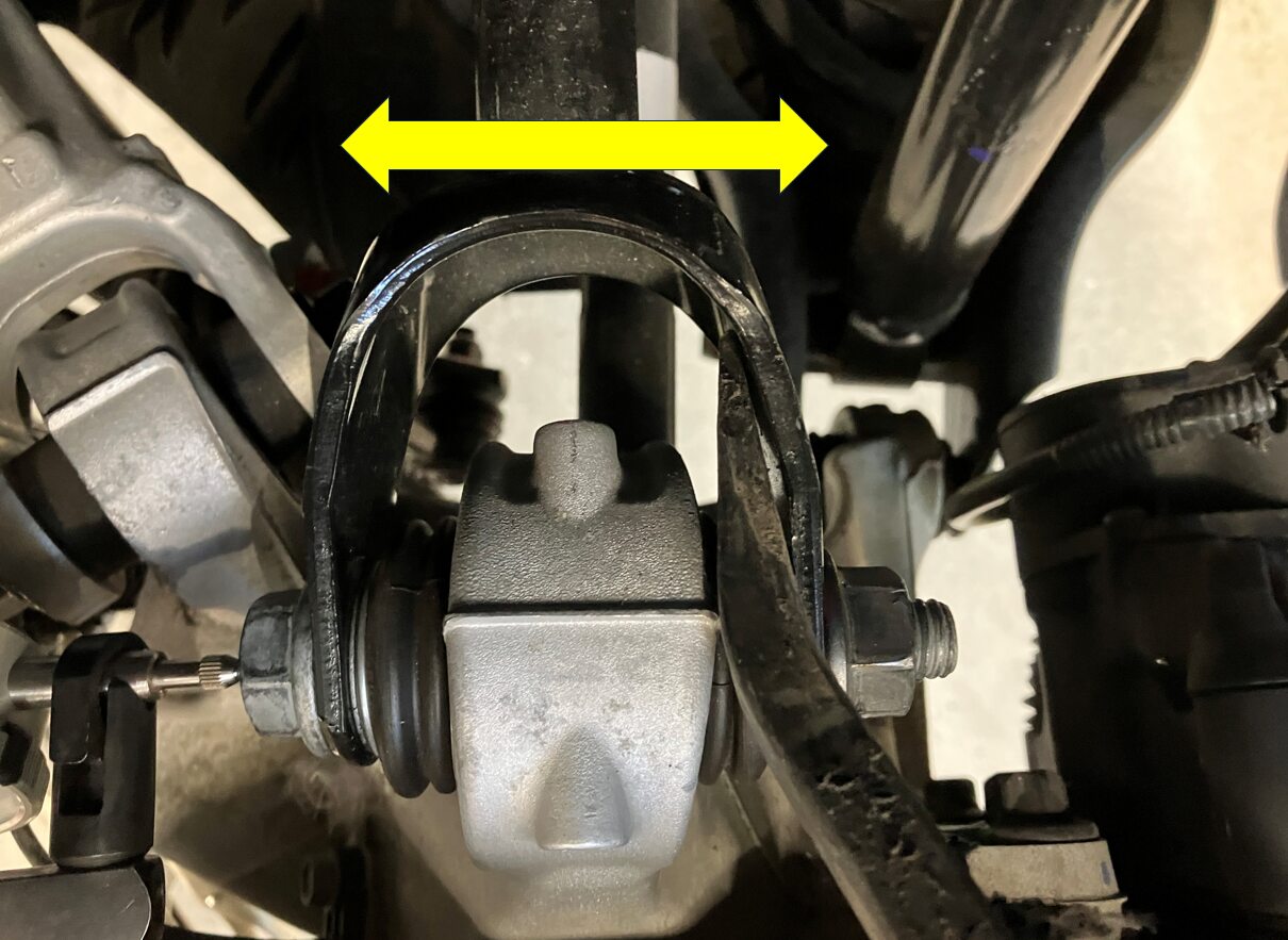 참고Check conditions of ball joints and bushings, etc, Inspect for any loose fasteners, Carefully apply pressure with a pry bar as needed