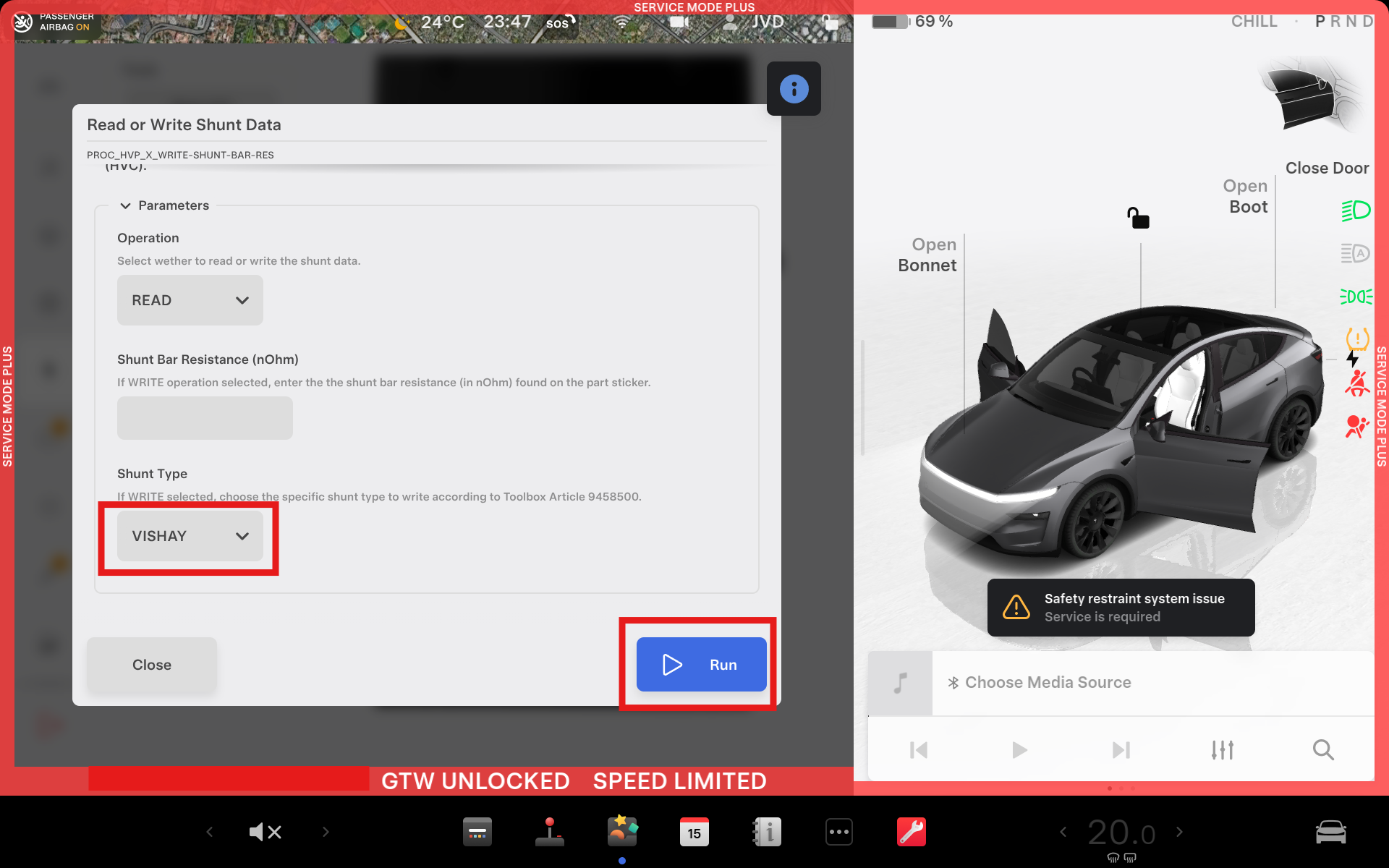 및 작업을 선택하고 2단계에서 기록한 션트 바 저항값을 입력하고 부품 번호에 따라 해당 션트 유형을 선택합니다. Run을 클릭하여 루틴이 완료될 때까지 기다립니다.