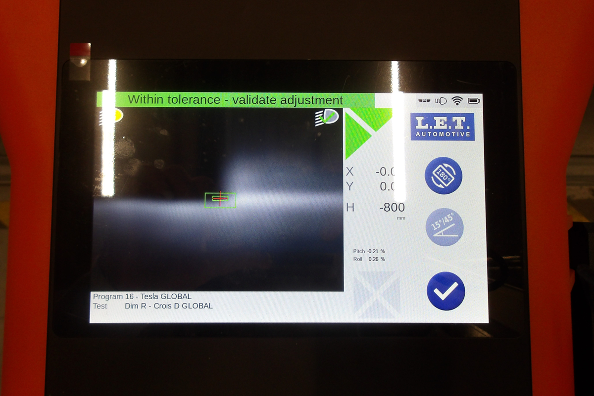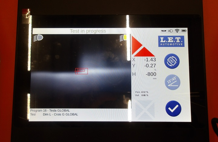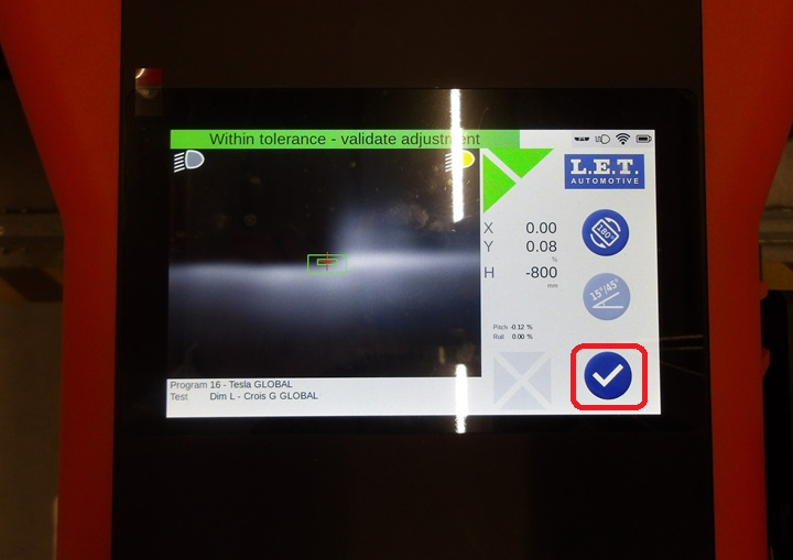 LH 및 RH 헤드라이트가 모두 규격에 맞게 조정되면 체크 표시를 선택하여 조정 값을 확인합니다.