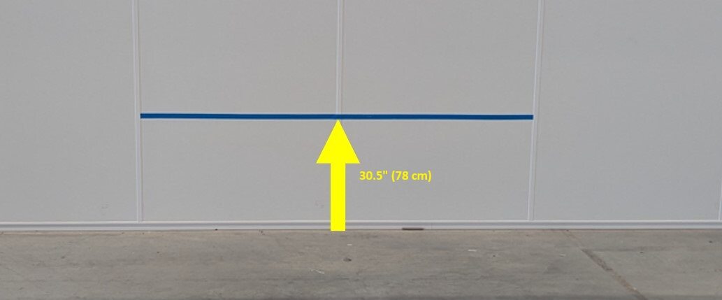 참고바닥에서 78cm(30.5인치) 위치의 벽에 테이프를 부착합니다.