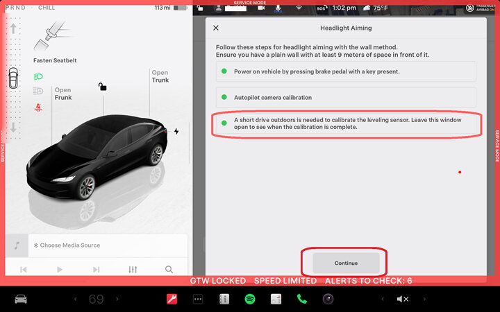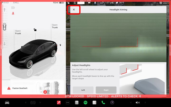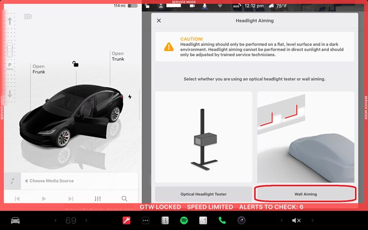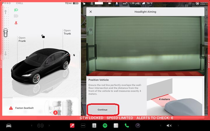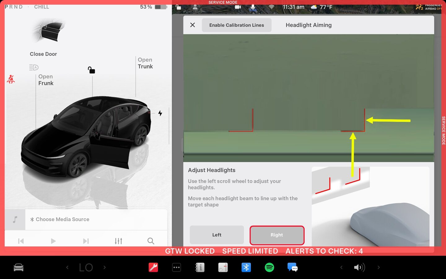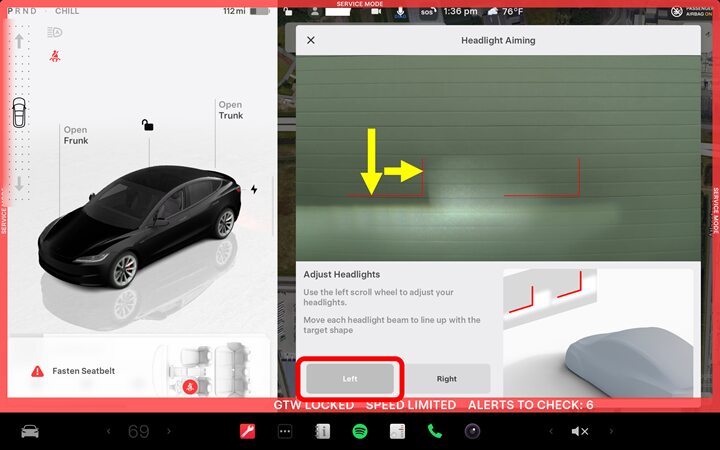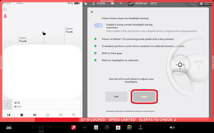 터치스크린을 통해 헤드라이트 조준 모드로 들어갑니다.