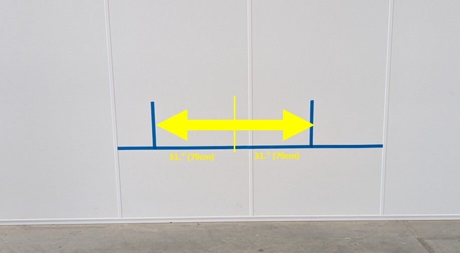 참고중심에서 79cm(31인치)를 측정하고 중심선의 양쪽에 수직으로 테이프를 부착합니다.