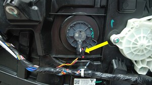 逆时针旋转锁片,然后将左前车门压力传感器从封闭板上拆下。