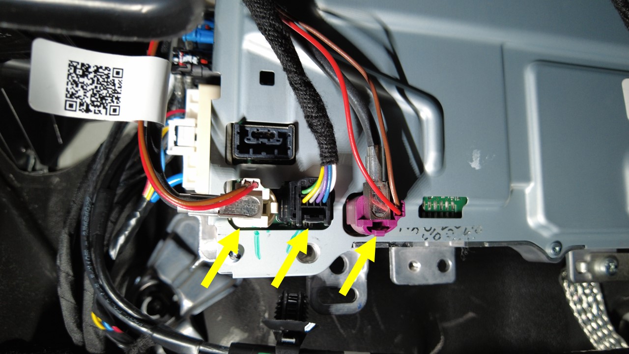 断开车载电脑右侧连接器(6 个),然后将车载电脑从车辆上拆下。