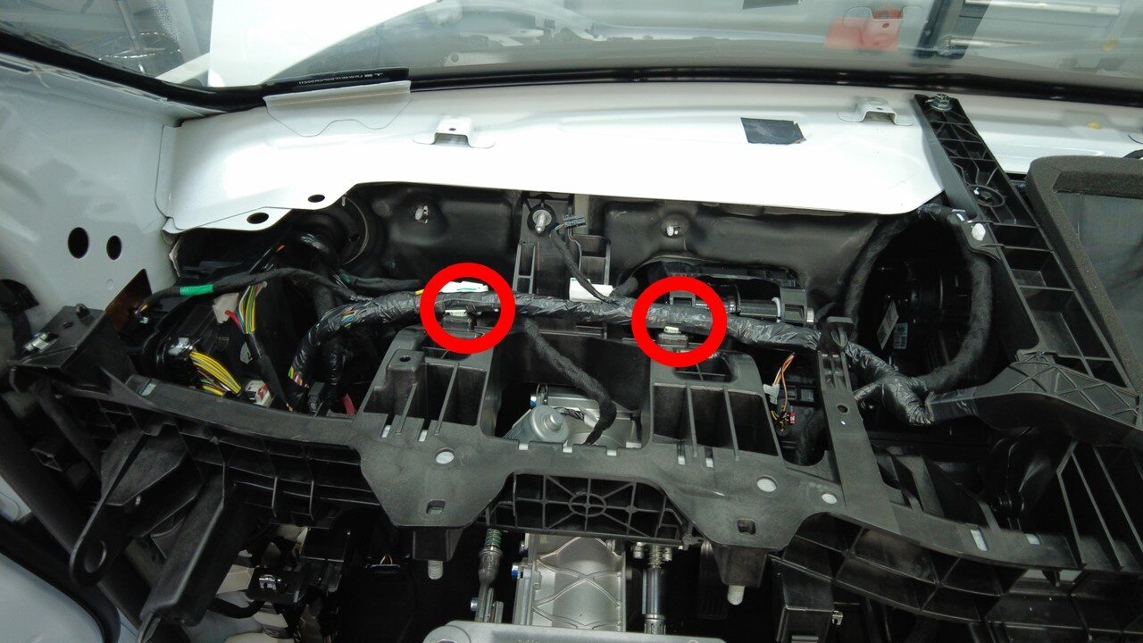 将线束夹安装到仪表板上靠近左侧控制器的位置。