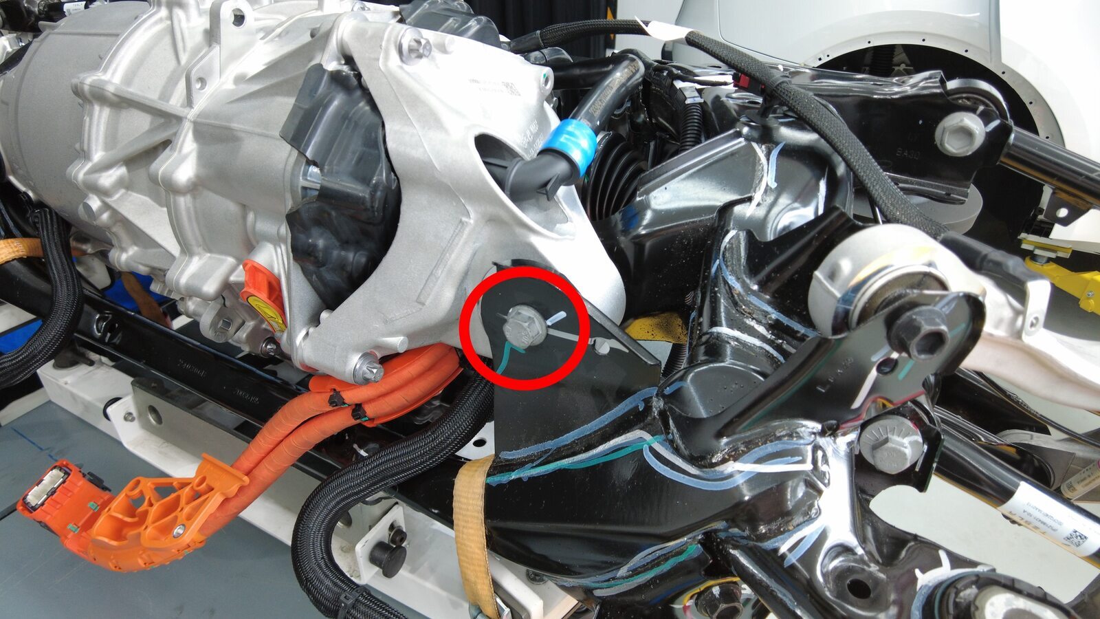 安装将驱动单元固定到副车架的后部螺栓,并手动拧紧