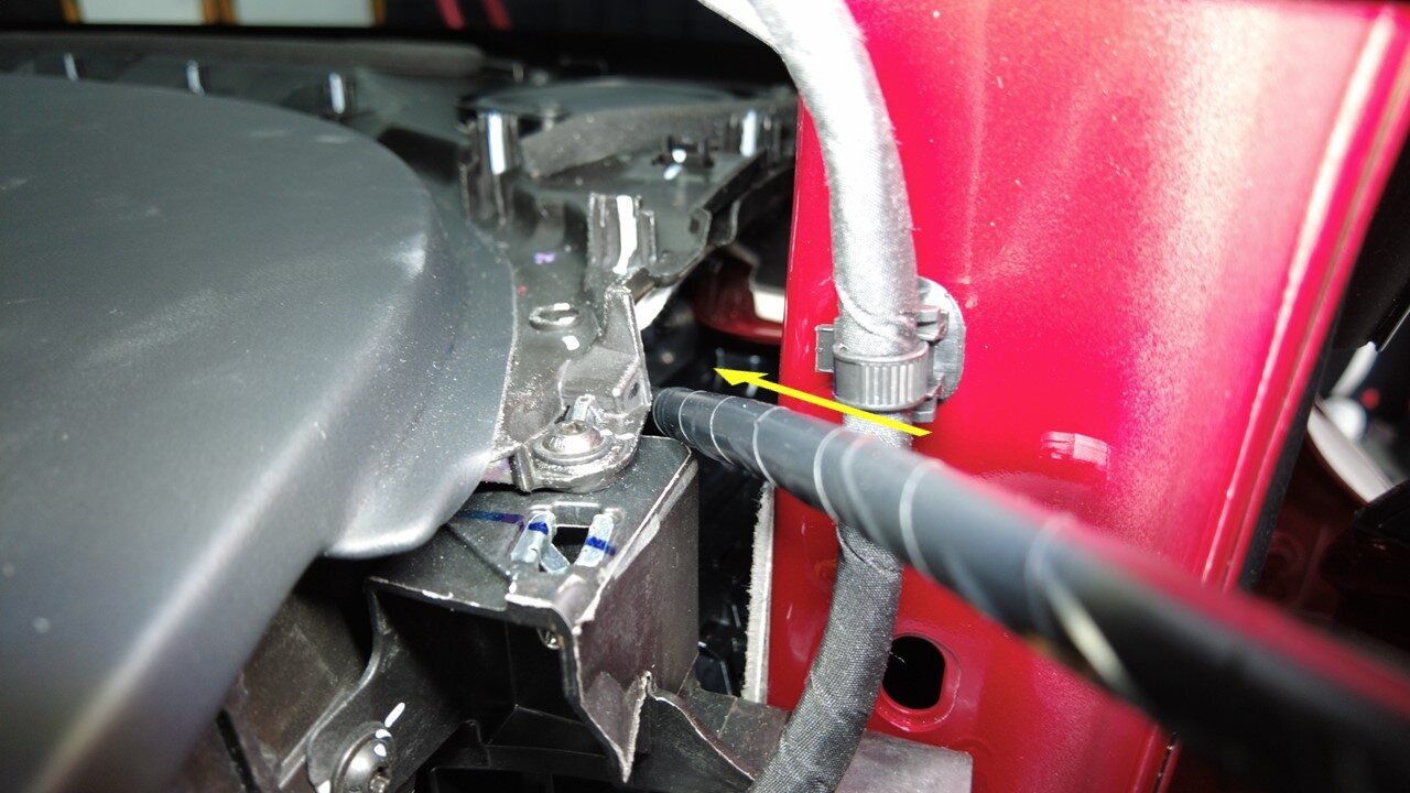 将右侧车身线束从右侧 A 柱区域松开。
