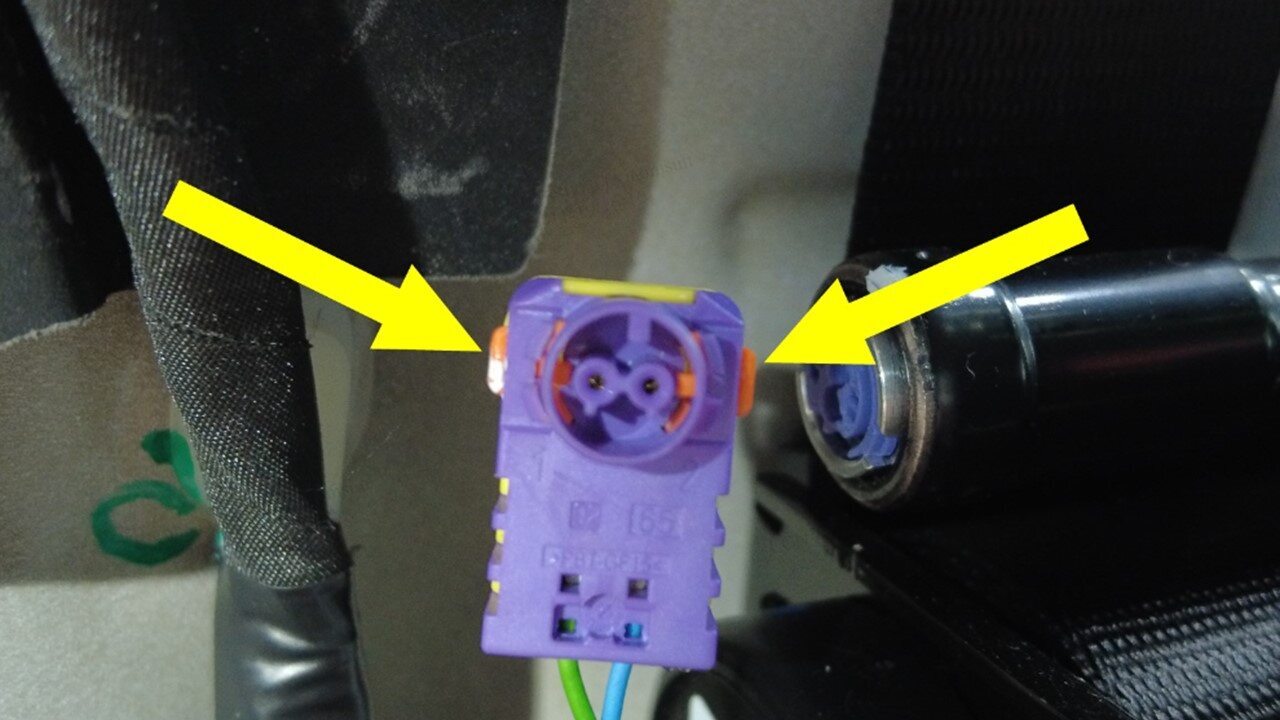 连接右侧 B 柱加速度计传感器连接器。