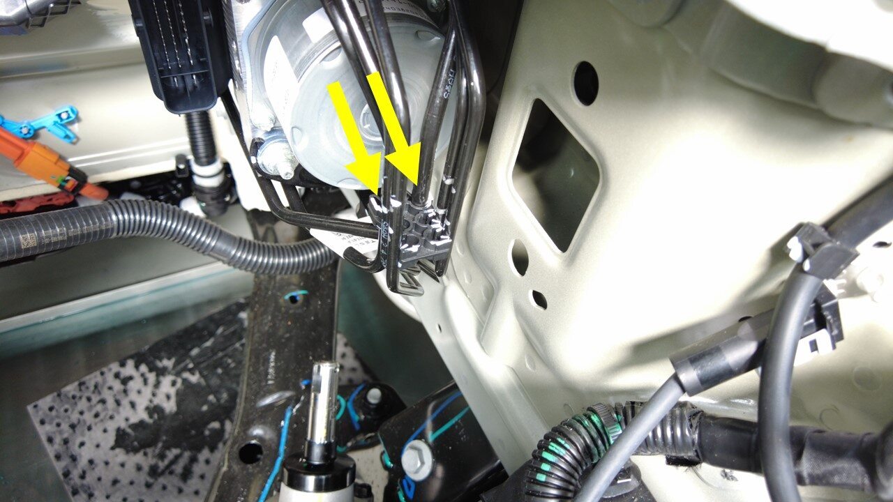 将主缸制动管路安装到液压控制单元 (HCU) 支架后侧的卡子(2 个)上。