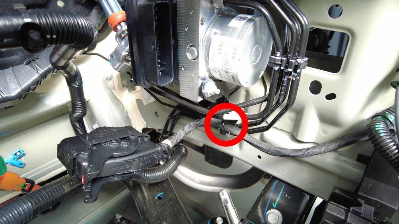 将液压控制单元 (HCU) 线束夹紧固到液压控制单元 (HCU) 支架上。