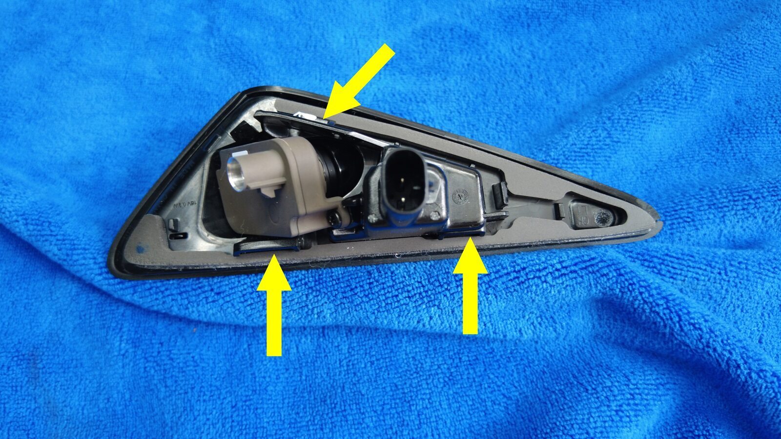 注侧转向灯安装到位时,会听到一声“咔嗒”声。
