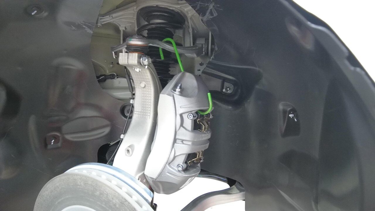 拆下左前制动钳,使用 S 型钩将其悬挂在旁边的固定零件上。请参阅 制动卡钳 - 前 - 左 - 无制动片 ((拆卸和更换))。