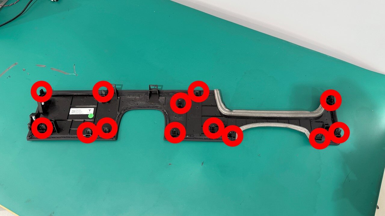 松开锁片(13 个),将仪表板下部总成从车辆上拆下。