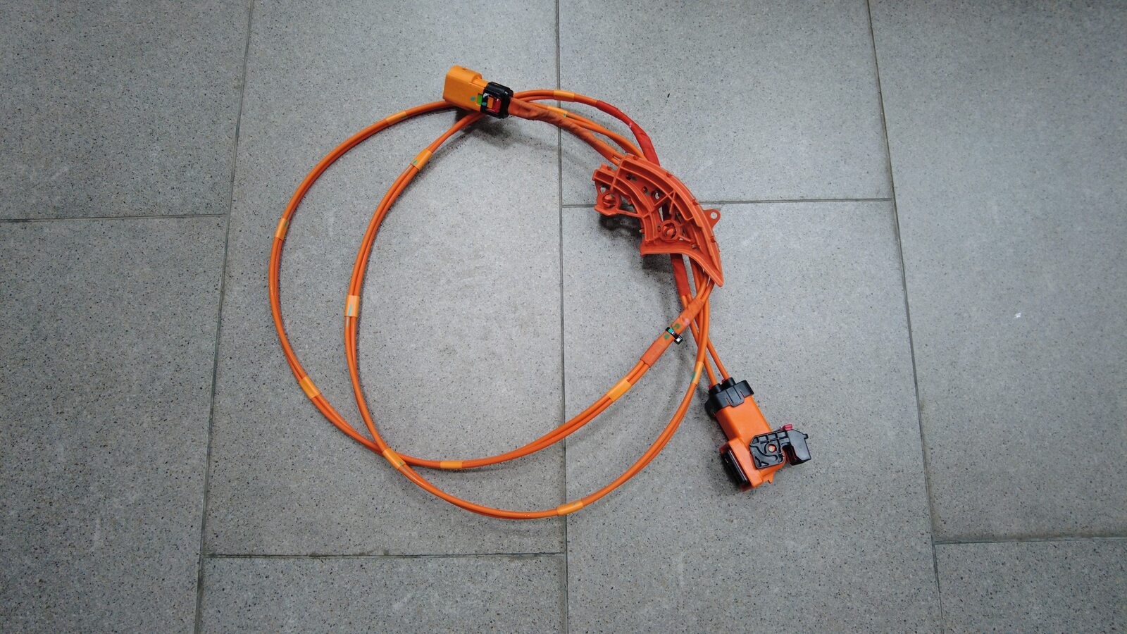 将辅助线束向上布设至歧管管道和高压电池下方。