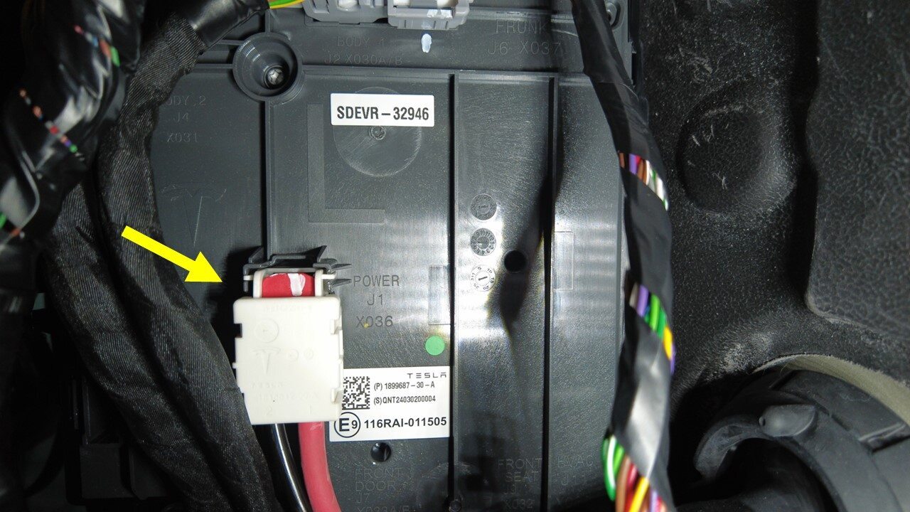 将 J1 电源电气连接器连接到右侧车身控制器模块。