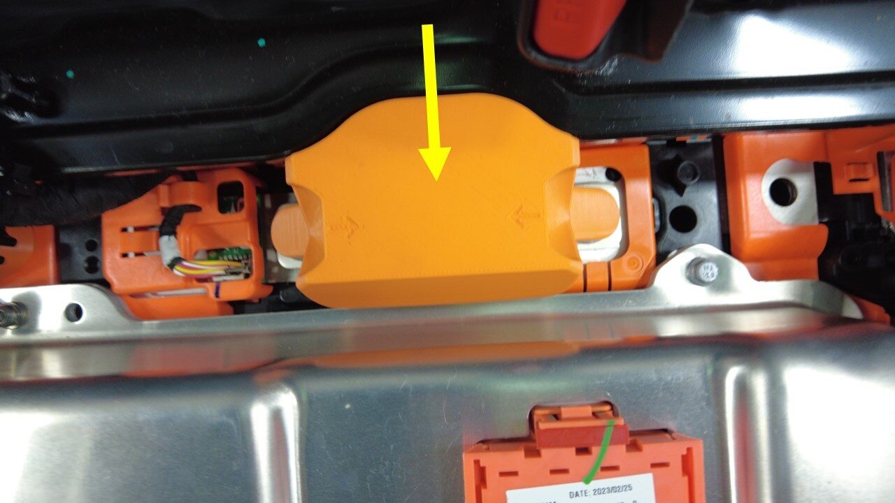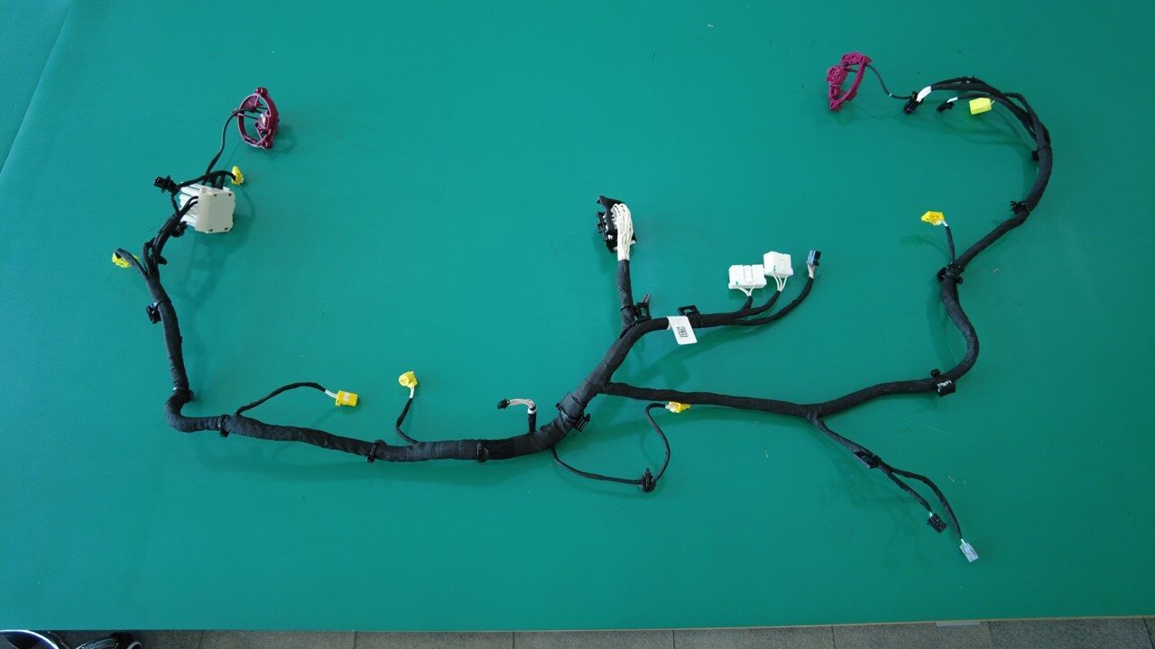 将超级线束放置在高压电池仓上,以备安装。