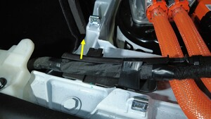 拆下用于封闭高压电池仓高压接头处充电接口母排检修盖板的螺栓,然后打开检修盖板。