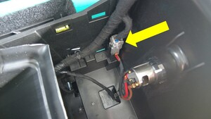 断开 12V 电源插座连接器,然后将其向上滑离中控台。