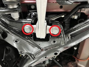紧固将左侧支柱固定到左前下方横向连杆的螺栓和螺母,然后用油性记号笔标记螺栓和螺母。