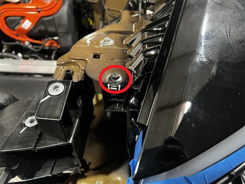 拆下将左侧前照灯固定到车身的螺栓(3 个)。