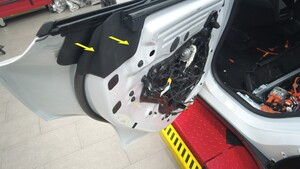 - 将左后车门内侧密封条向下压入左后车门。