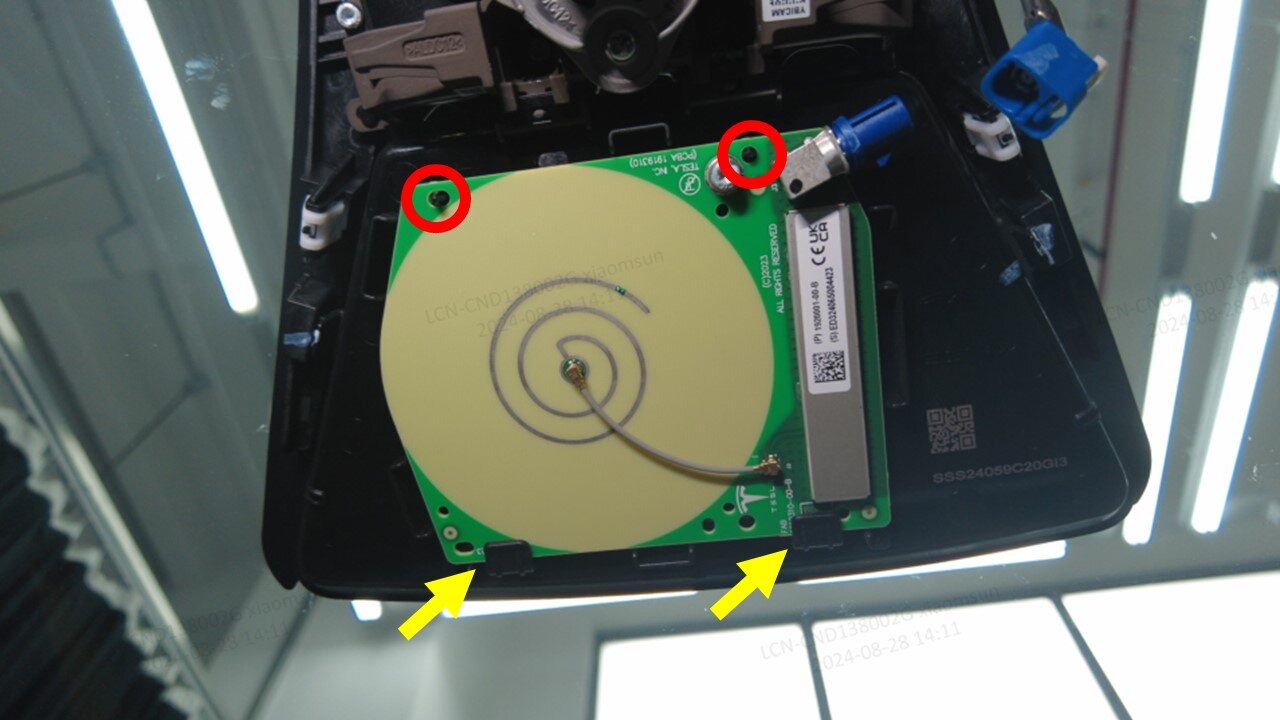 松开锁片(2 个),将 GPS/GNSS 天线从支架上拆下。