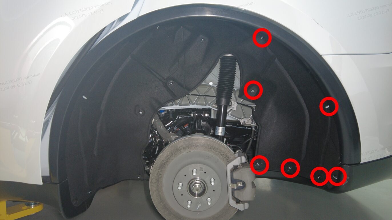 部分松开将左后轮毂内衬固定到车身的卡子,然后将轮毂内衬置于一旁。