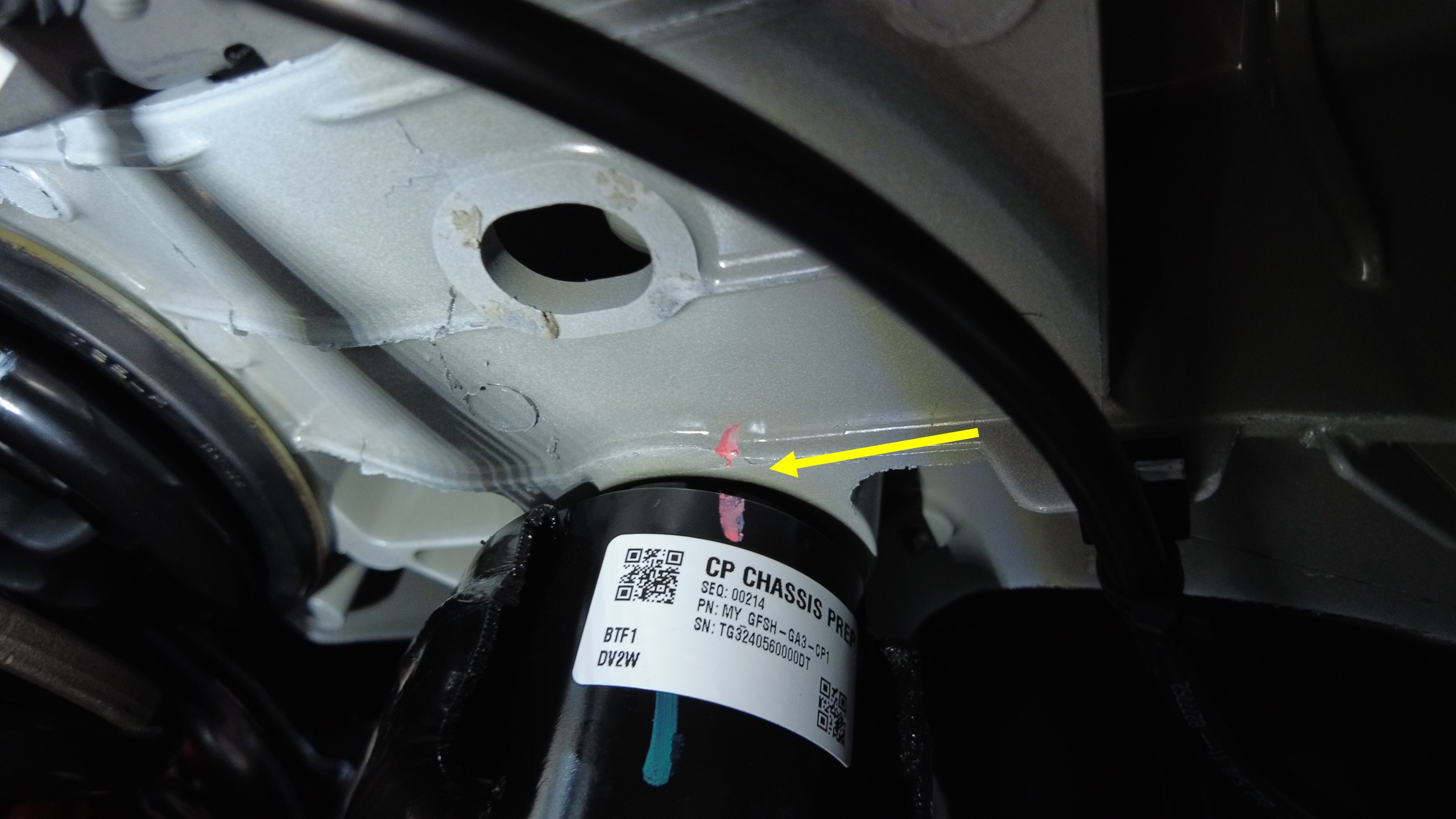 注如有必要,也可以标记出副车架铸件和副车架套管在车身上的位置。