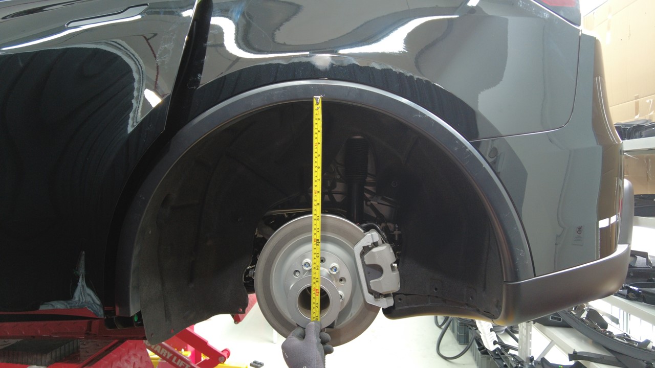 在左后和右后副车架螺栓上标记好副车架的初始位置。