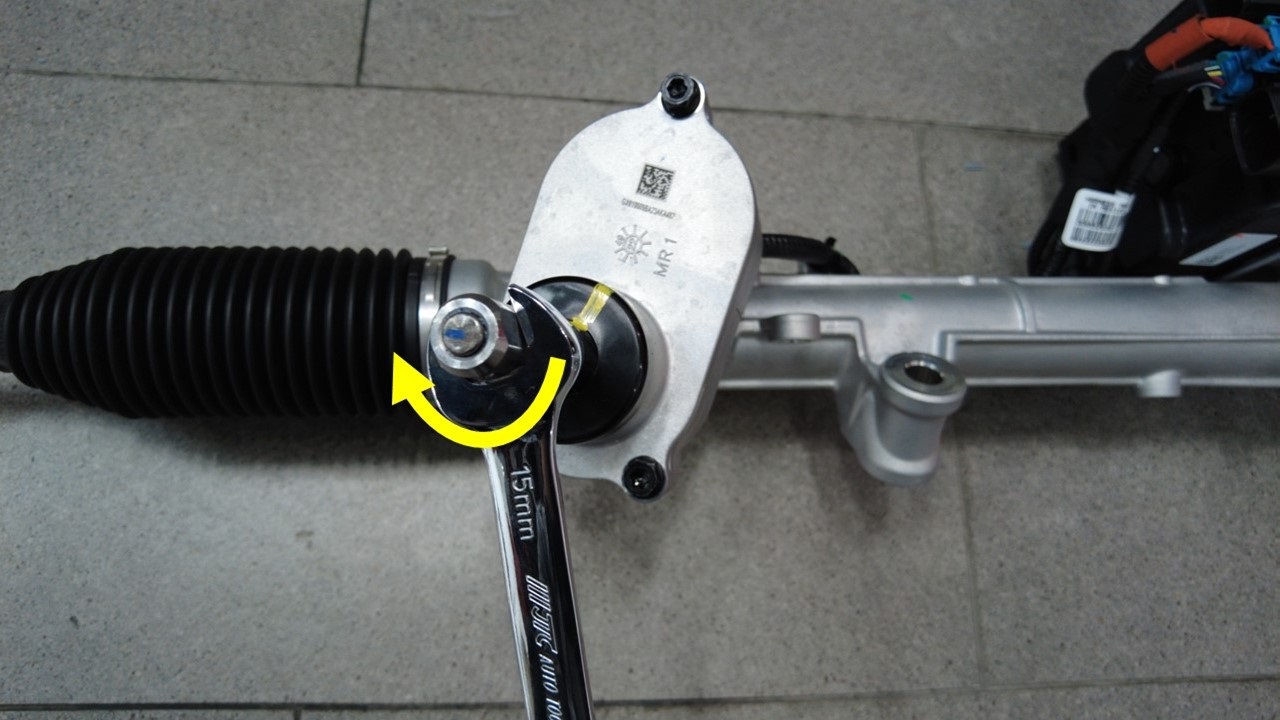 松开左侧外横拉杆上的止动螺母,然后逆时针转动外横拉杆球头,将横拉杆从新的转向机总成上拆下。