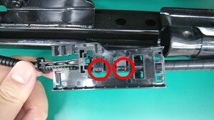 注向前移动支架(朝车头方向),再向后移动,将其安装好。