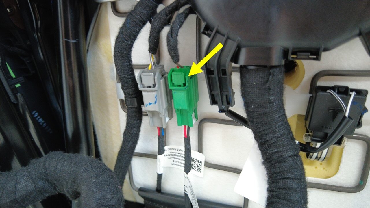 断开座椅靠背加热器连接器,然后将连接器从座椅底部分离。