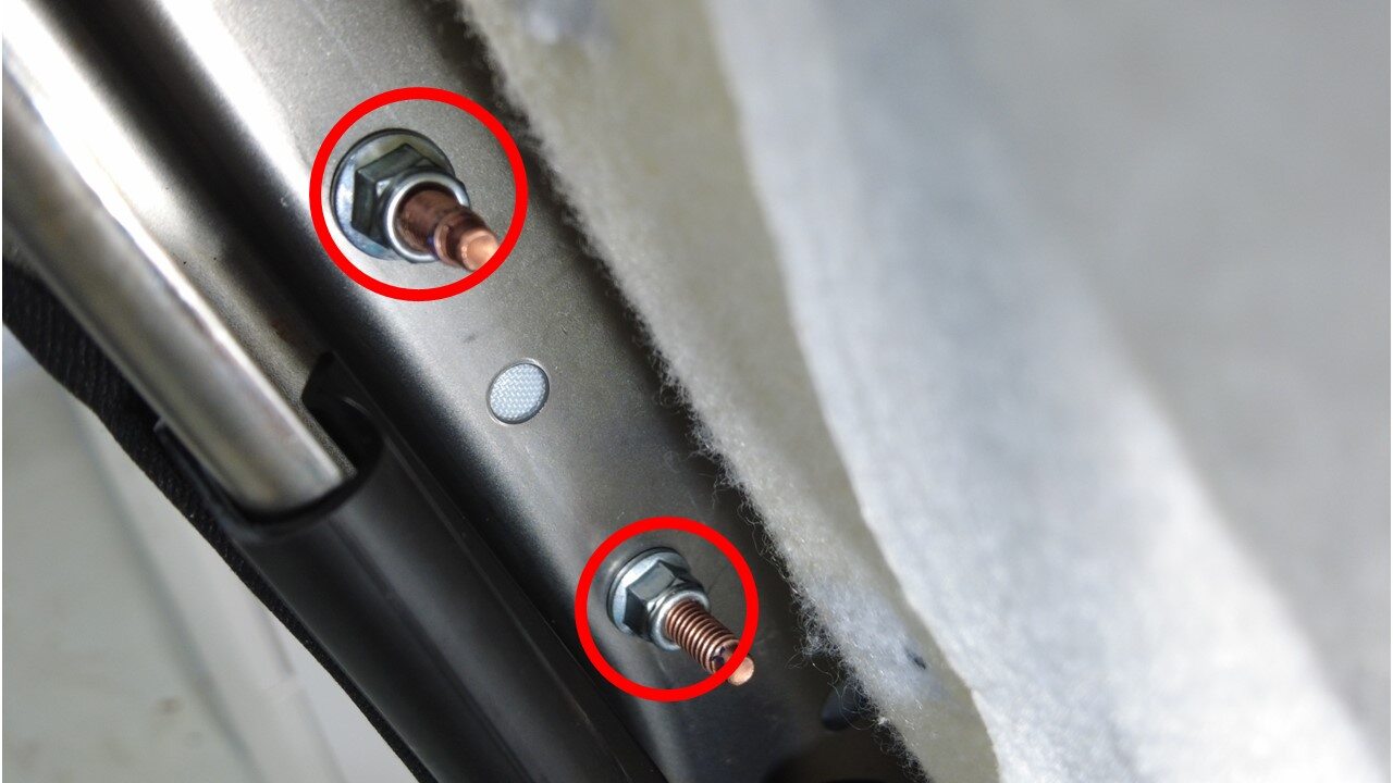 注2 个螺柱。移开螺柱,将气囊滑入正确位置。将螺柱与检修孔对齐。