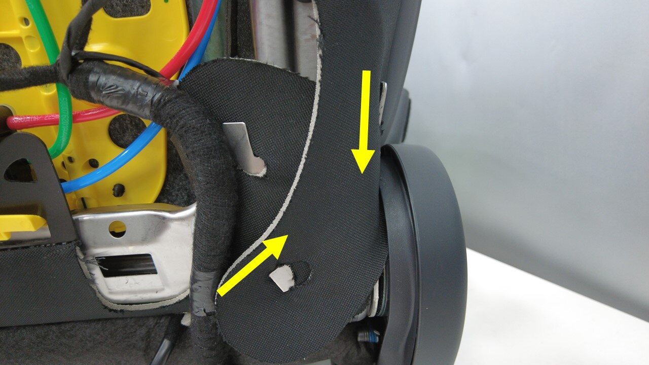 安装将驾驶位座椅靠背饰板固定到座椅靠背泡沫的 Velcro 系带。