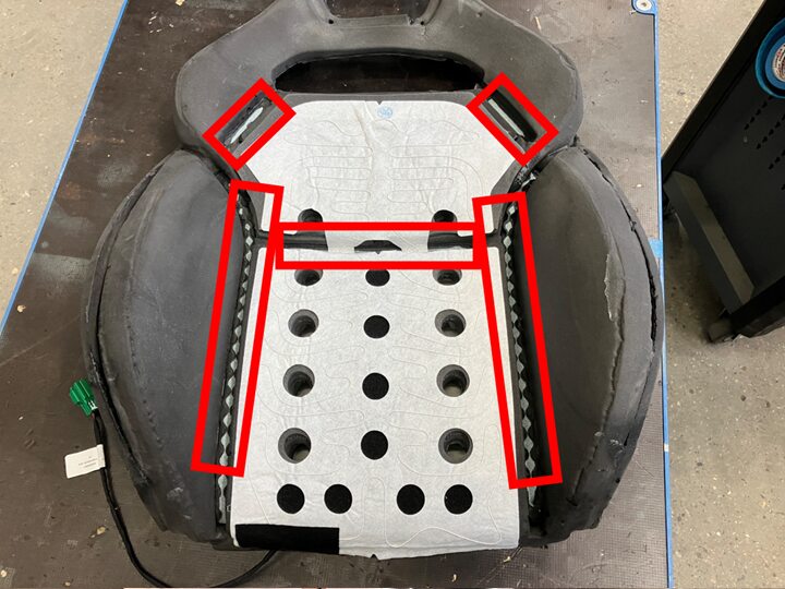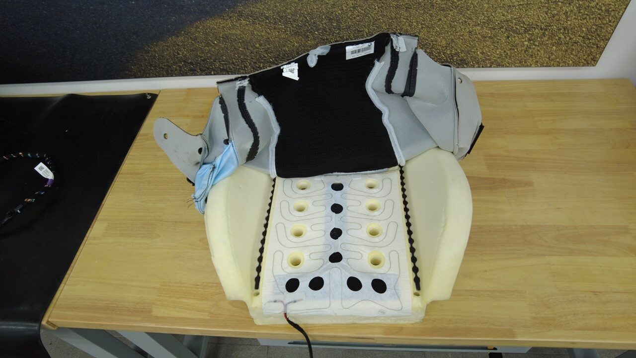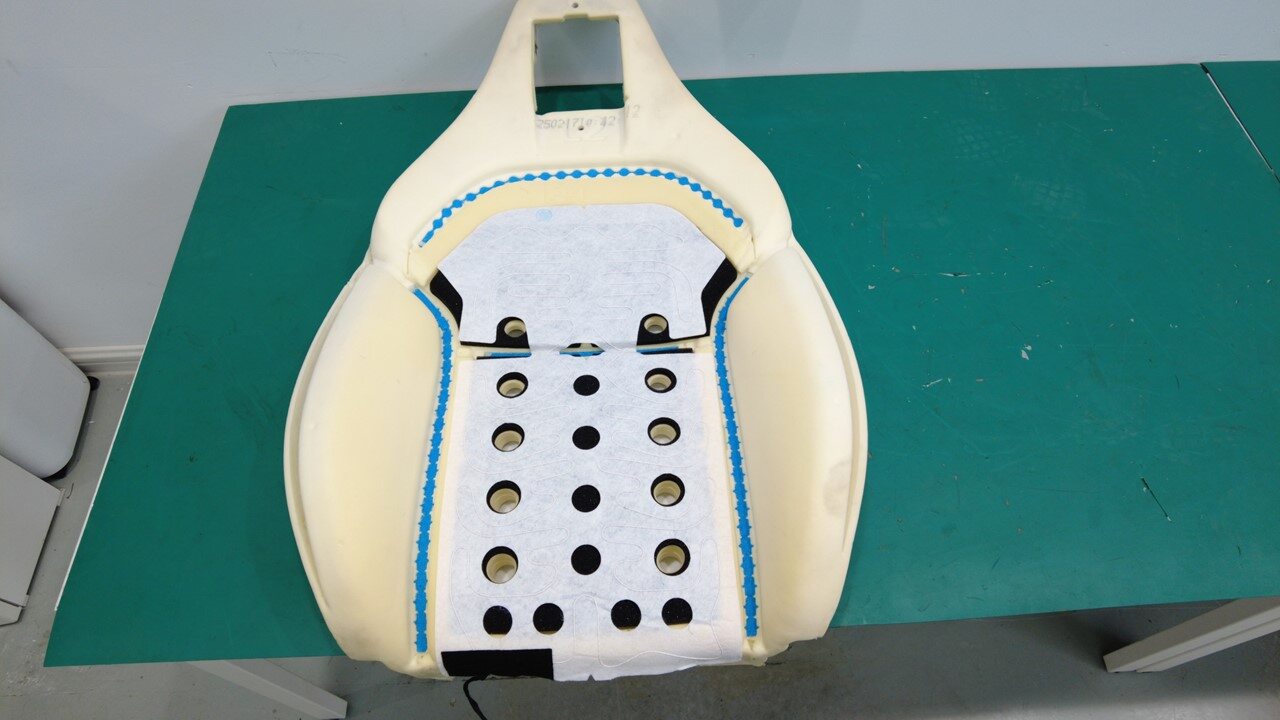 将座椅靠背加热垫安装到座椅靠背泡沫上。