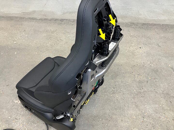 注确保加热器线束和座椅靠背饰板均与座椅靠背框架完全分离。