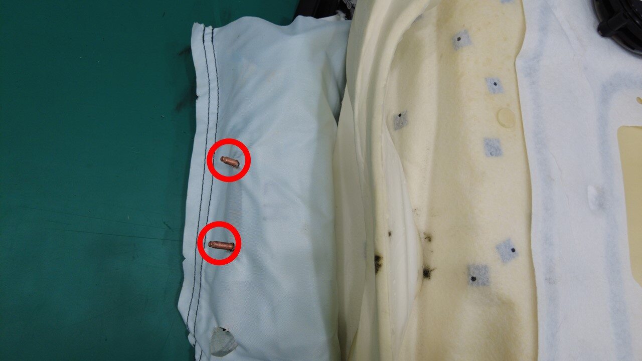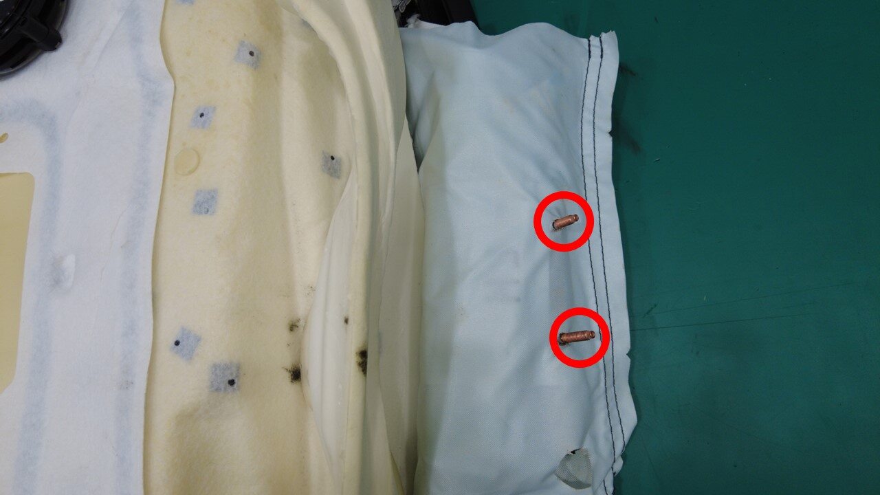 注2 个螺柱。将气囊螺柱与气囊袋分离,然后将气囊总成滑出。如果气囊掉落或损坏,请更换气囊。