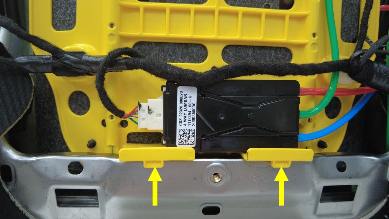 安装将腰部支撑底部固定到座椅靠背框架的锁片 (x2)。