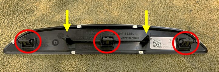 注2 个锁片。先将座椅饰板底部拉离座椅框架,注意确保加热器线束和饰板与框架分离。垂直提起饰板两侧,左右移动饰板,以将其从框架上拆下。