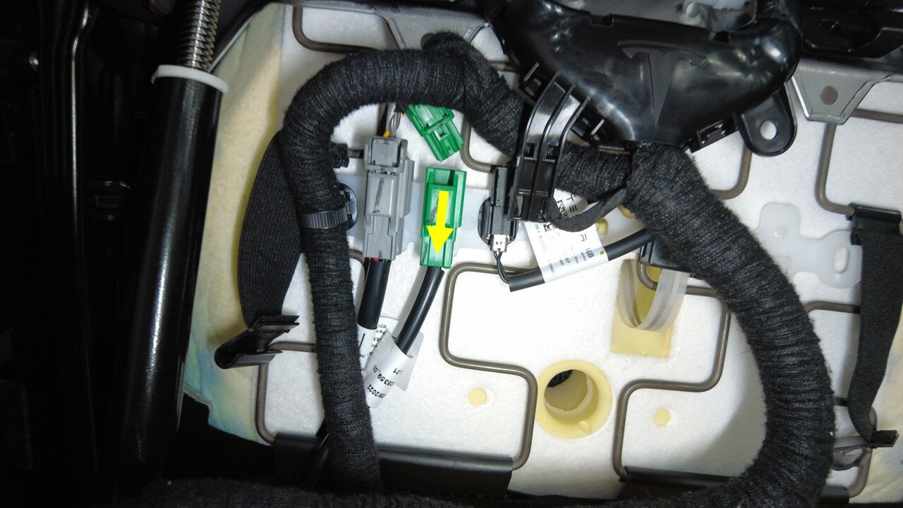 将座椅靠背加热器线束连接器安装到左前座垫悬架上。