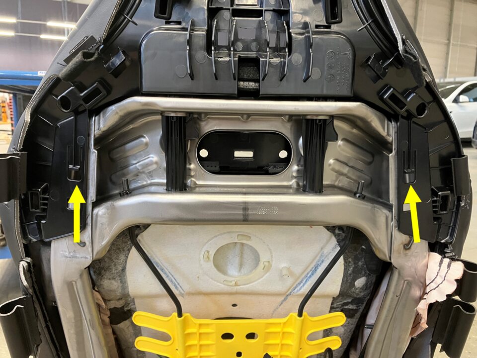 运动版座椅:将基板安装到前排座椅靠背软饰板罩总成上