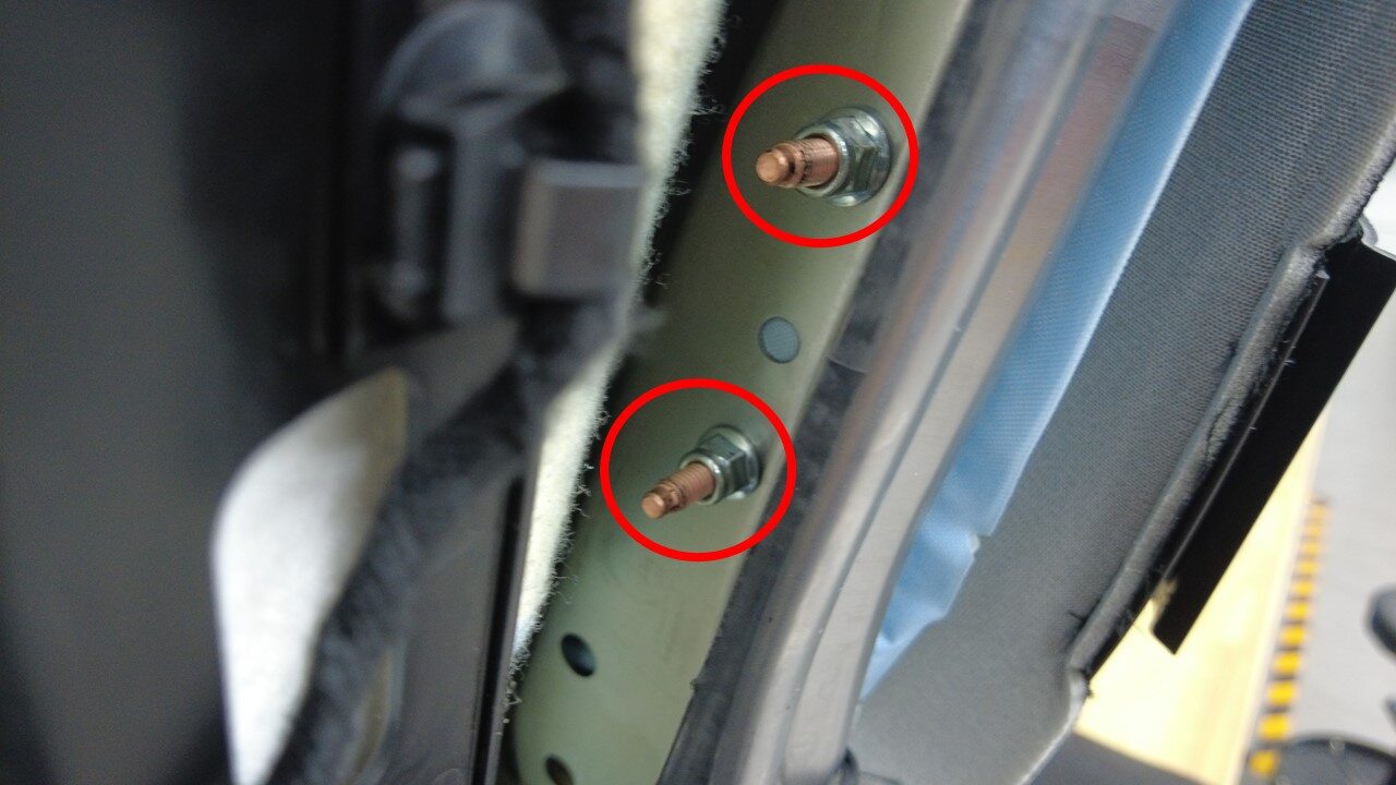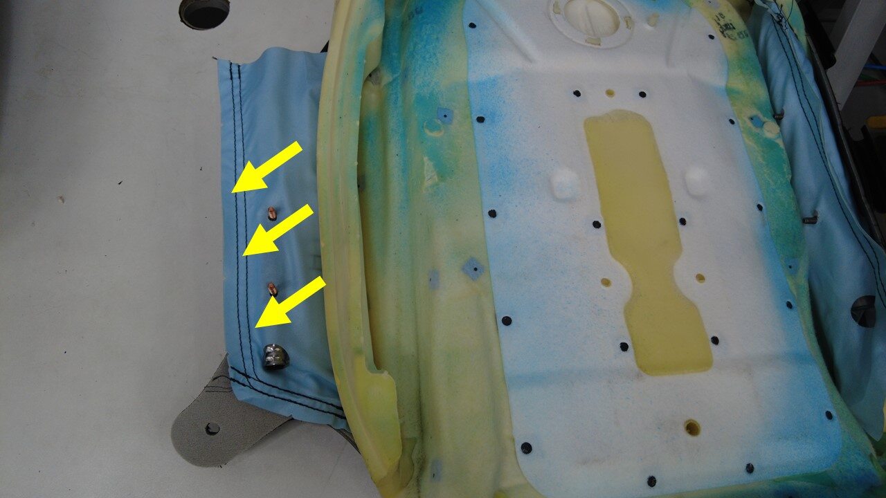 拆下并弃用将驾驶位座椅侧气囊固定到座椅靠背框架的螺母 (x2)。